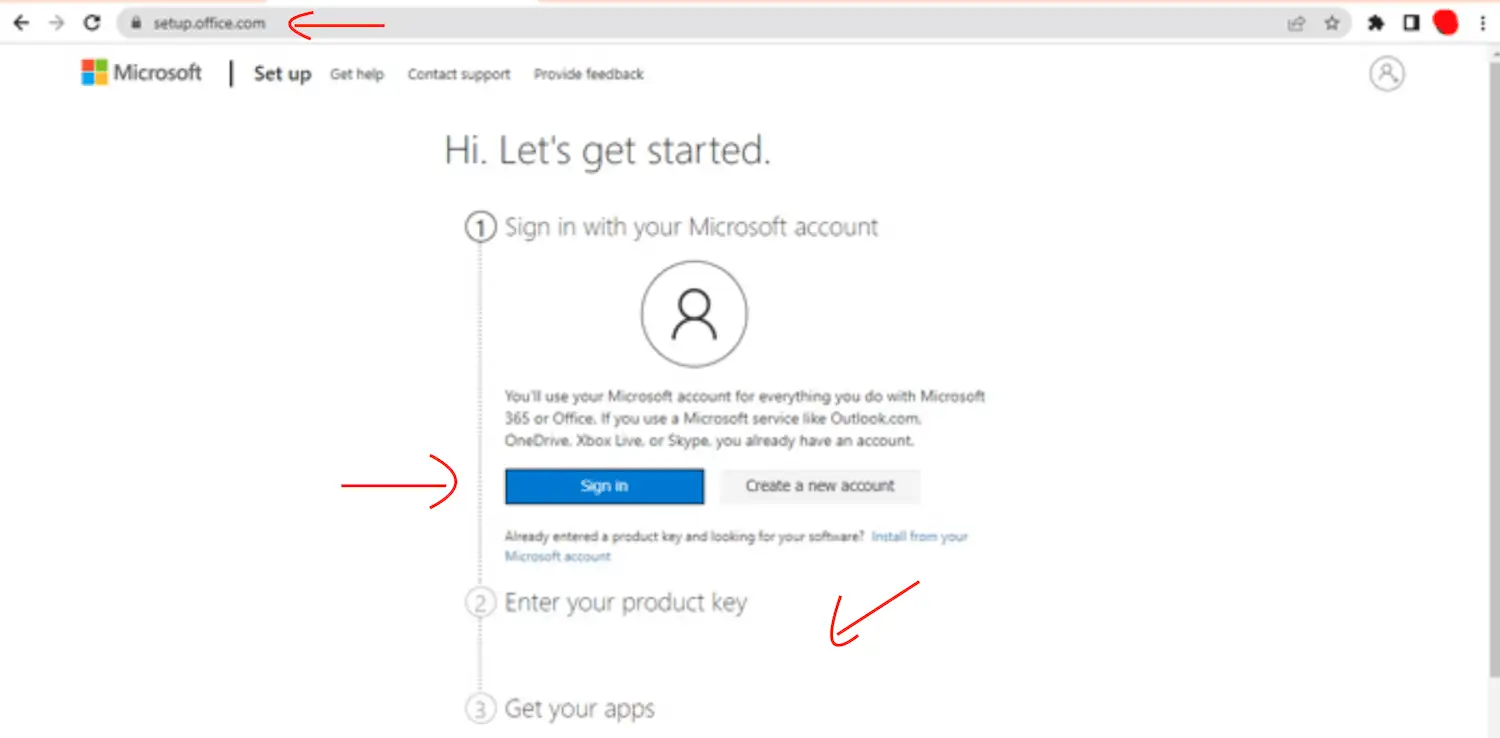 Step 1: Access https://setup.office.com/ to log in to your account.